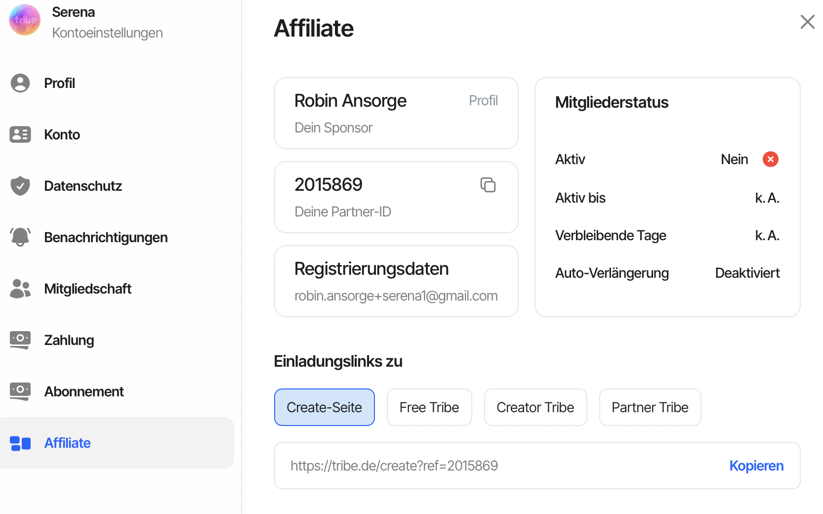 Das kann 1–3 Werktage dauern. Sobald die Verknüpfung abgeschlossen ist, springt dein Status automatisch auf „Aktiv“ (grün).